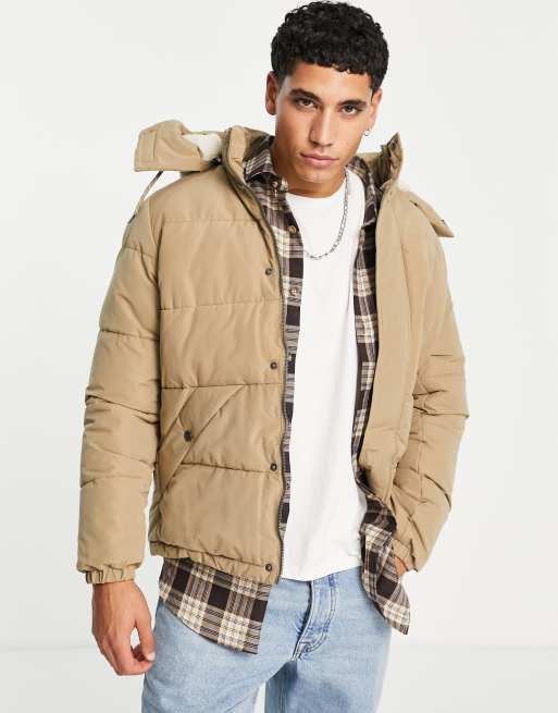 Jack Jones Originals puffer jacket with detachable sherpa hood in beige Very well made.