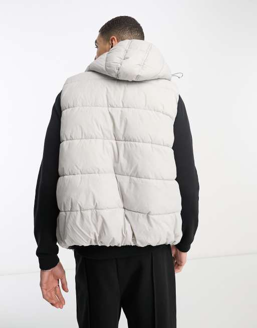 French Connection Tall puffer vest with hood in light gray Very well made.