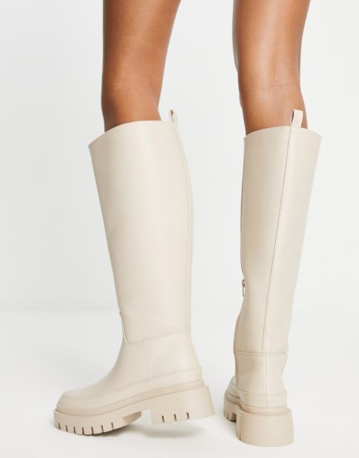 London Rebel chunky pull on knee boots in cream ASOS Very well made.