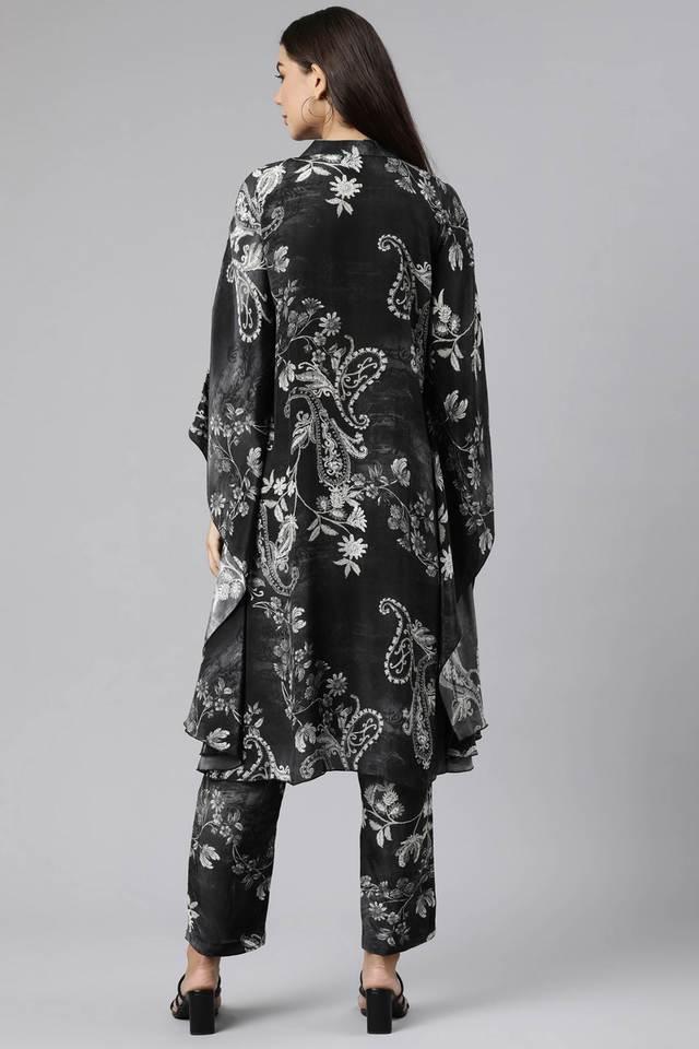 Buy NEERUS Grey Floral Crepe Collared Women s Kurta Shoppers Stop Very well made.