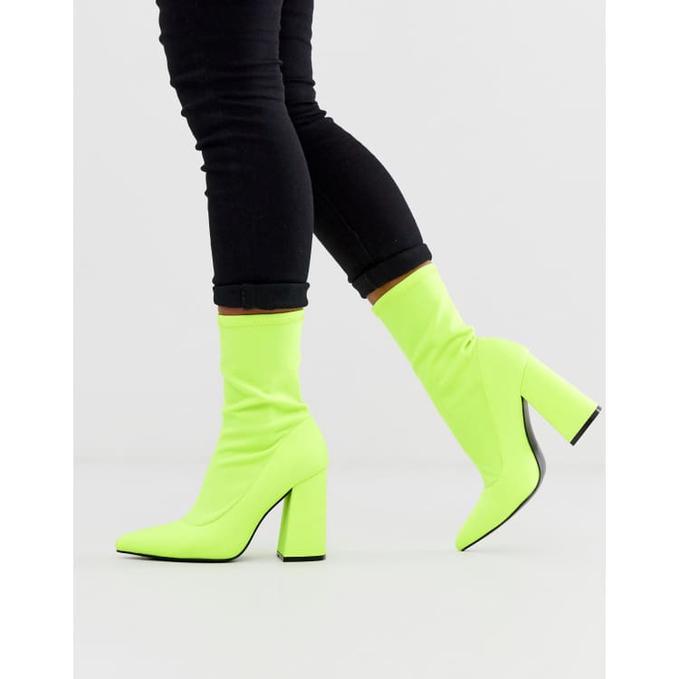 Sequined Heeled Ankle Boots Neon yellow Ladies H M CA Very well made.