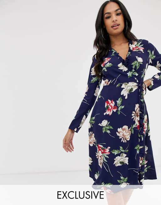 Boohoo exclusive wrap midi dress in blue floral Very well made.