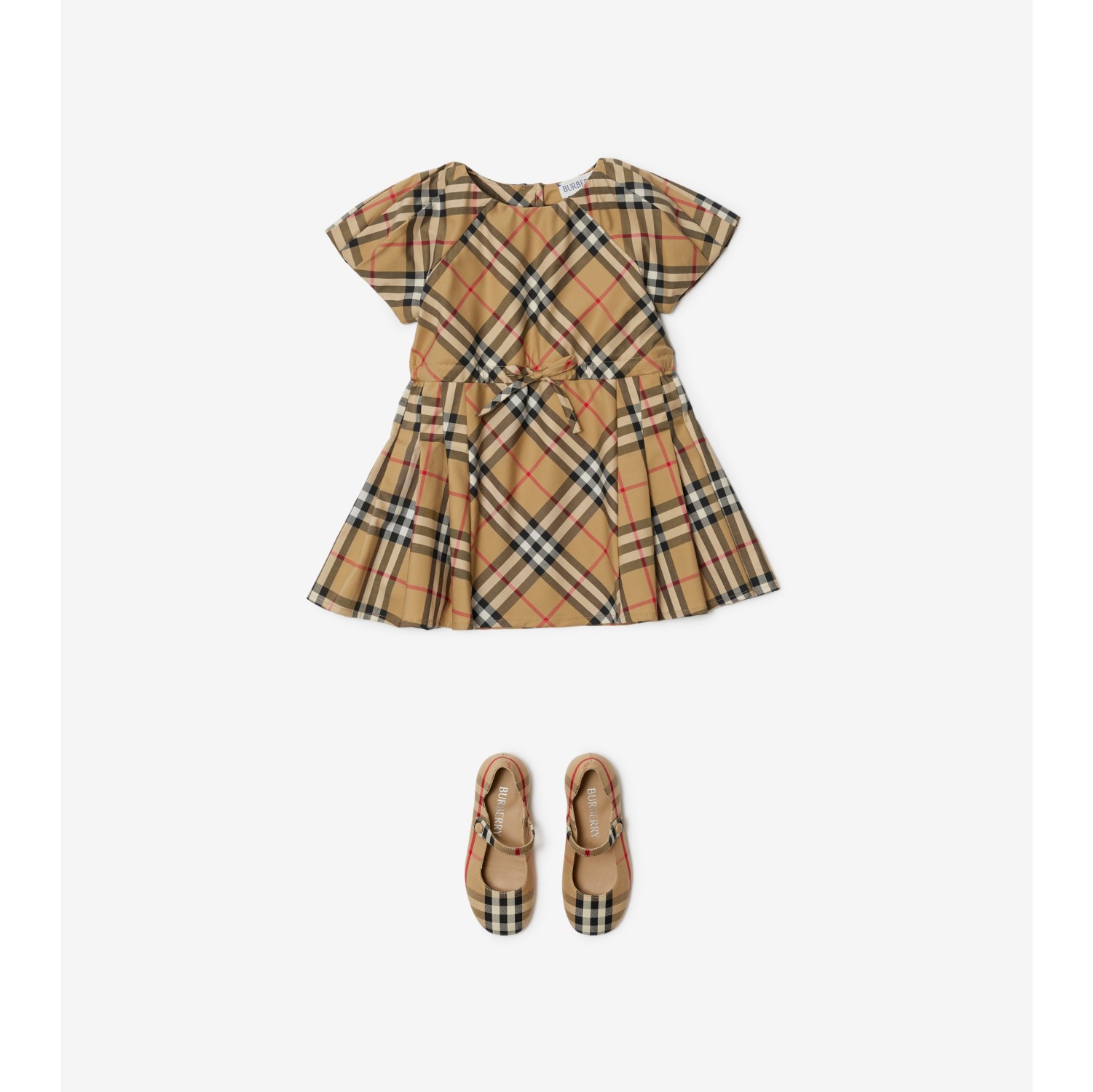 Pleated Check Stretch Cotton Dress in Archive beige Children Very well made.