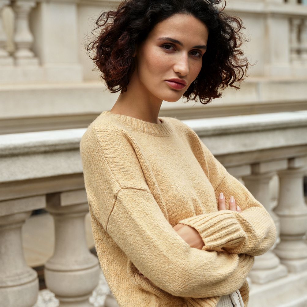 Women s Boucle Easy Fit Crew Neck Sweater Lands End Very well made.