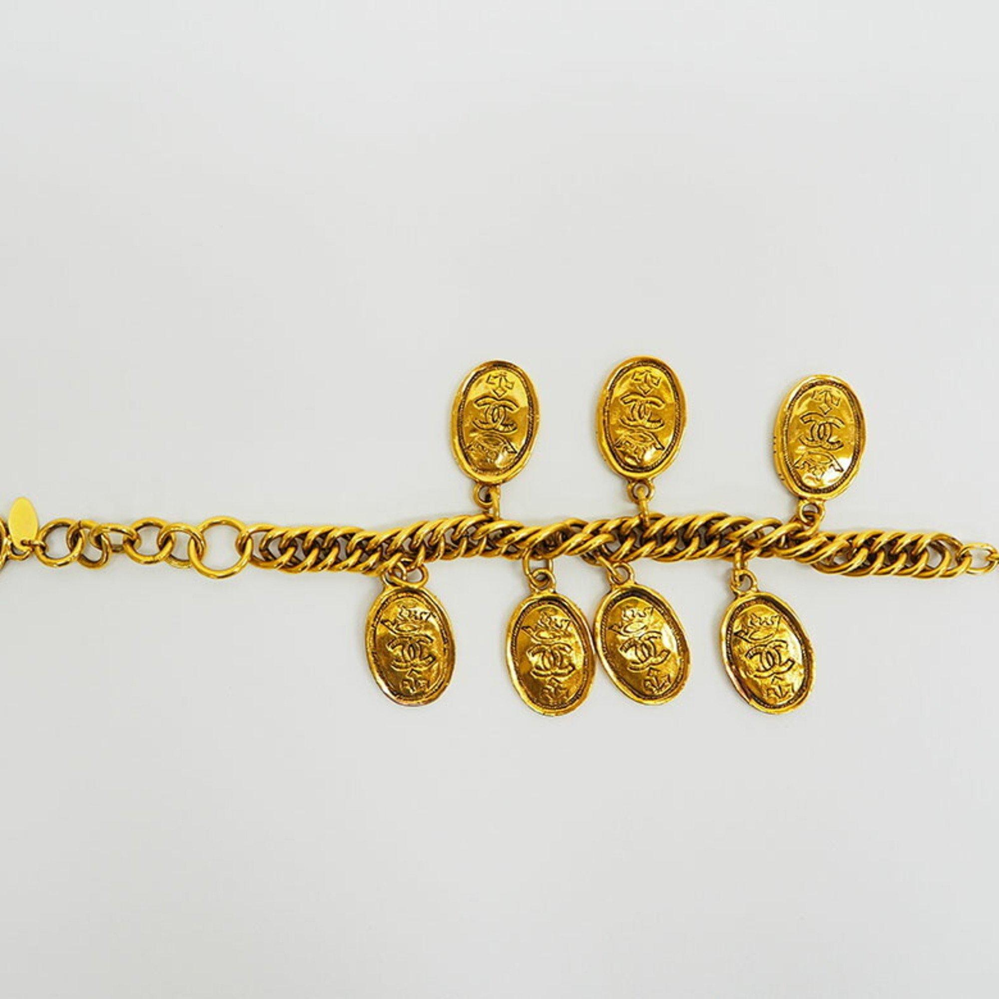 Chanel Vintage Charm Coco Mark Bracelet Gold Medal Coin Crown Very well made.